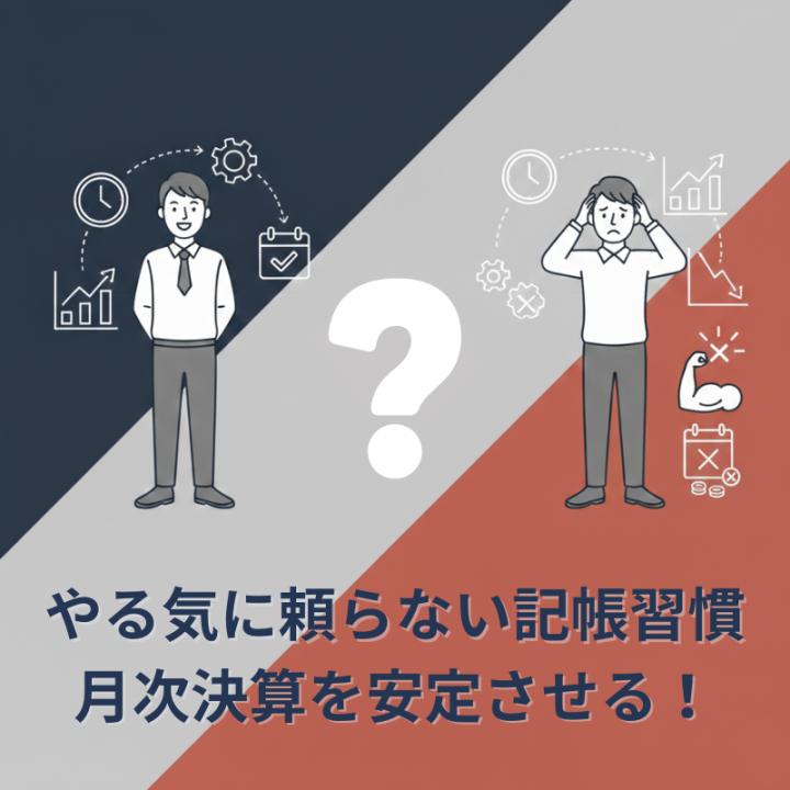 しかし、日常の記帳が後回しになってしまい、「月初が毎回バタつく」「スタッフに依頼しても遅れやすい」といった悩みが生まれがちです。これは、経営者もスタッフも、やる気に左右される“行動の仕組み”になっていることが原因です。本当に必要なのは、“やる気がなくても動ける仕組み”です。